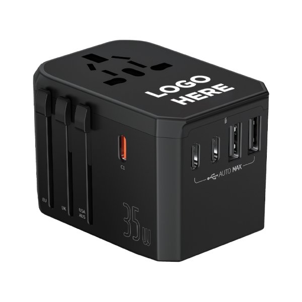 35W 3 Type-C port and 2 USB port Built-in PD3.0PD2.0QC3.0PPS and other fast charging protocols, Compatible with 5 electronic devices charging, Intelligently identify and match currents, efficient charging without damage to the machine Product Size : 75 x 5.5 x 5.2 cm Printing Option : Engraving