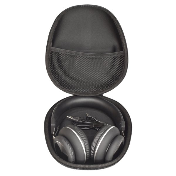 HEADPHONE WITH POUCH Product Specification Effective distance: 10m Working hours of the headset: About 10 hours Charge time of the headset Àbout 2.Ohours Charging input voltage: 3.7V—-5V DC Bluetooth frequency 2.402-2.480GHz Dimension : 18.5 cm H x 15 cm W Printing Option : Screen