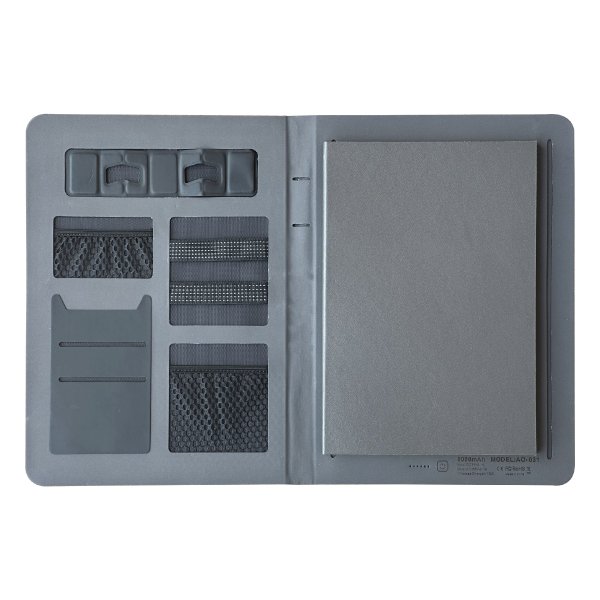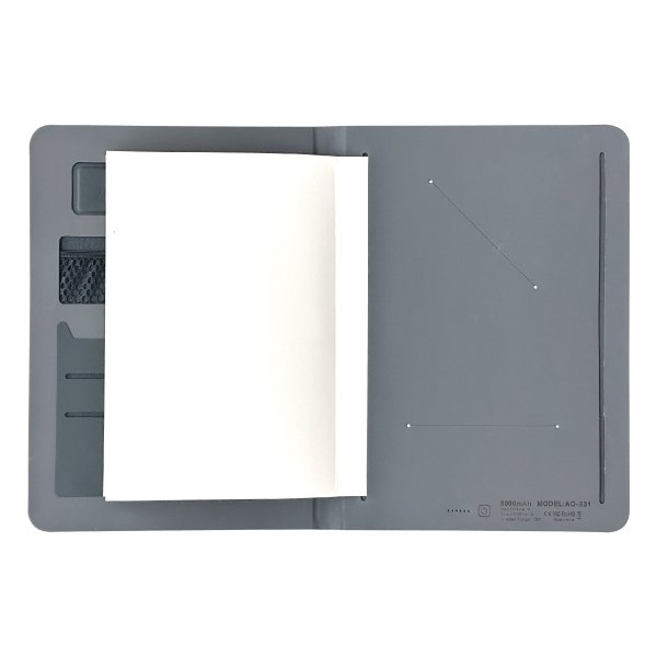 A4 Portfolio Multifunction High Quality Aditional pocket for documents, Pen Loop Input :DC 5V-2.1A, Output: DC 5V-2.1A Wireless charge 15w, Power bank 8000mah Product Size : 24.8x 18 x 2 CM Printing Options: Screen Printing, UV, Debossing, Engraving
