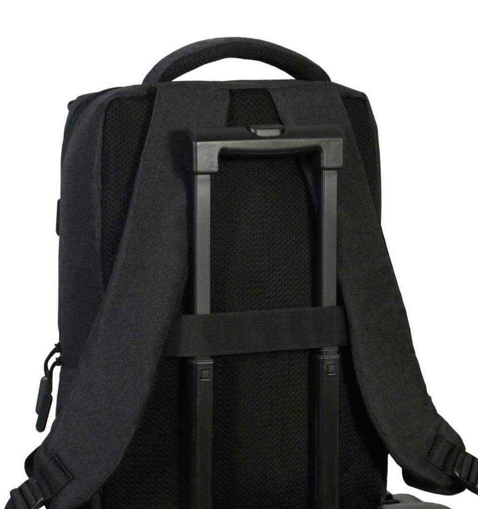 Baruth Office Laptop Backpack is made with GRS-certified RPET. Many useful features include external USB for smart charging, side pocket, front pocket for quick access and trolley harness.