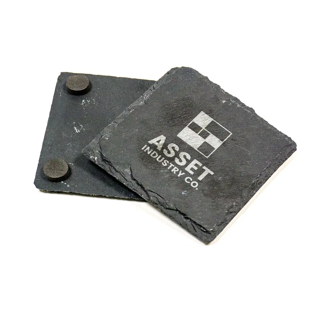 Add a touch of elegance to your home or office with this premium set of 2 black slate coasters. Crafted from natural slate stone, each coaster offers a unique, rustic texture that complements any decor. The 10x10x2 cm coasters come with non-slip rubber feet to ensure stability and prevent surface scratches. Ideal for protecting your furniture from heat and liquid damage, these coasters are not only functional but also a stylish accessory for dining tables, coffee tables, or office desks. Perfect for home use, corporate gifting, or promotional events.