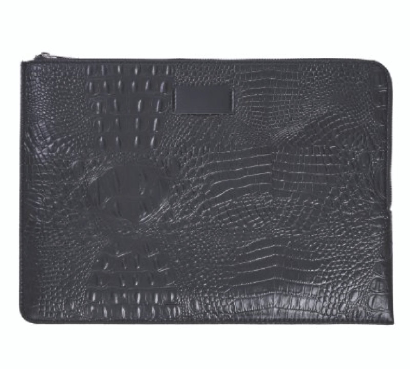 Crocodile Leatherrette Laptop Sleeve with zipper closure. Product Size: 37.8×27.5x2cm. Packaging: Kraft Paper Sleeve