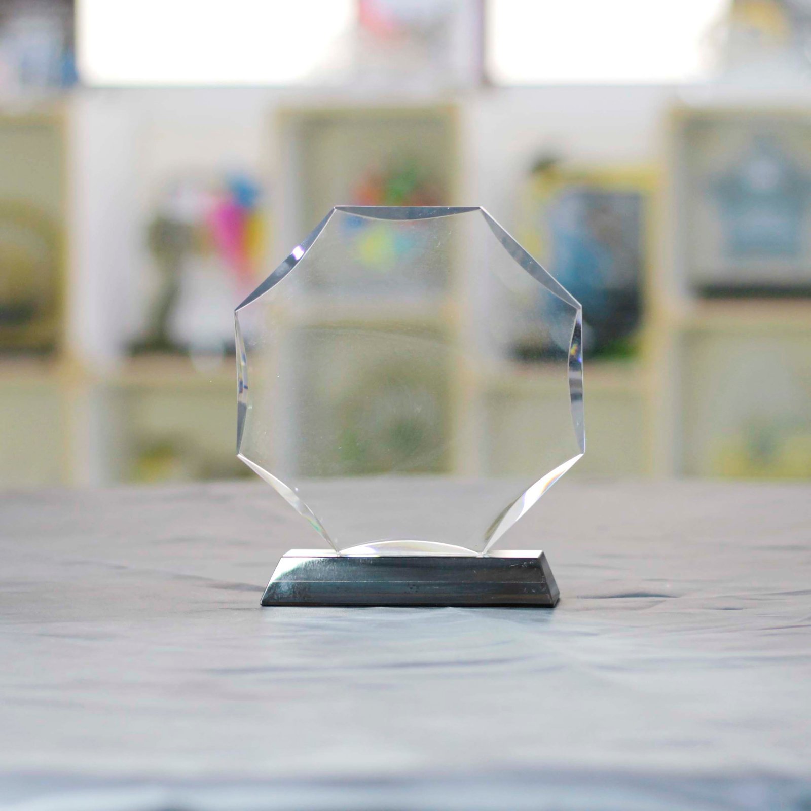 Hexagon bevelled Mounted on Black base Branding Option: UV Print, Surface Engraving Packaging: 1. Velvet Box 2. Rexin Box 3. PU Leather Box