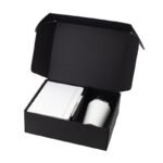 Gift set containing a double walled leakproof tumbler (350ml), A5 soft touch hardcover notebook and hexagonal barrel ballpoint pen – all 3 items are color matched in the gift set. Great value gift set from Giftology. Packed in a cardboard paper gift box.