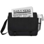 Messenger bag made from 600 D polyester. Consists of one main compartment, one large quick access compartment on the front and adjustable shoulder straps. There is also a compartment on the side to keep your bottle.