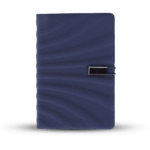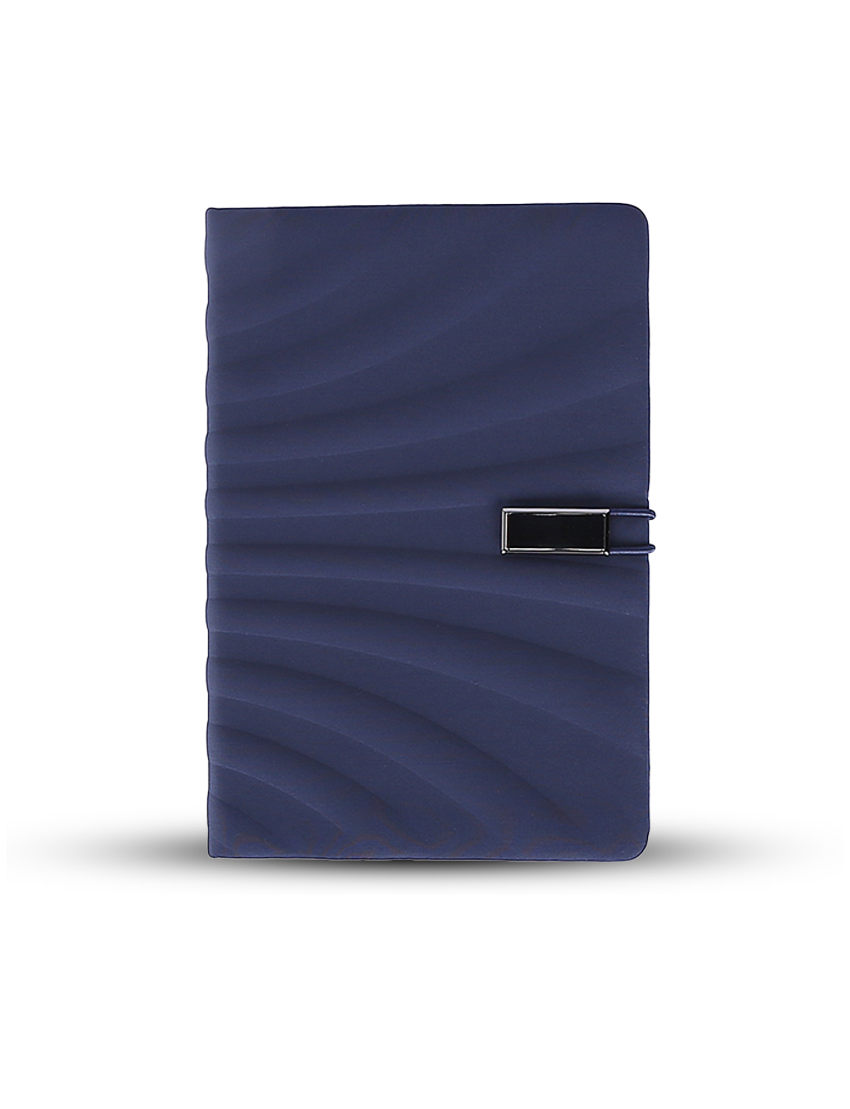 A5 Notebook with wavy design compressed foam technique. Has 88 sheets cream lined paper and 8 sheets of blank paper. With Metal plate for branding and elastic closure. Product Size: 21x14x1.5cm Packaging: Non Woven Sleeve in a Cream Paper Box