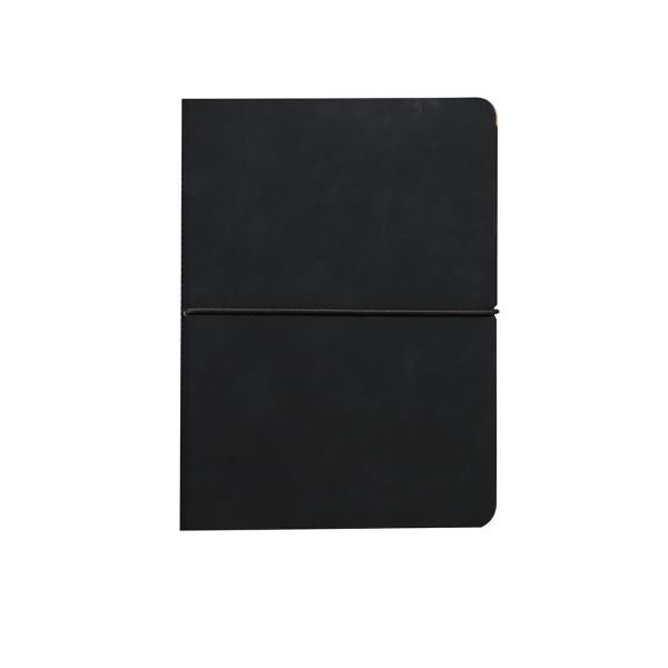 96sheets A5 size notebook in kraft paper with PU cover. Has paper pocket inside for inserting documents. Has sheet side color and elastic closure matching item color. Product Size: 21.6×15.5×1.3cm. Packaging: Polybag